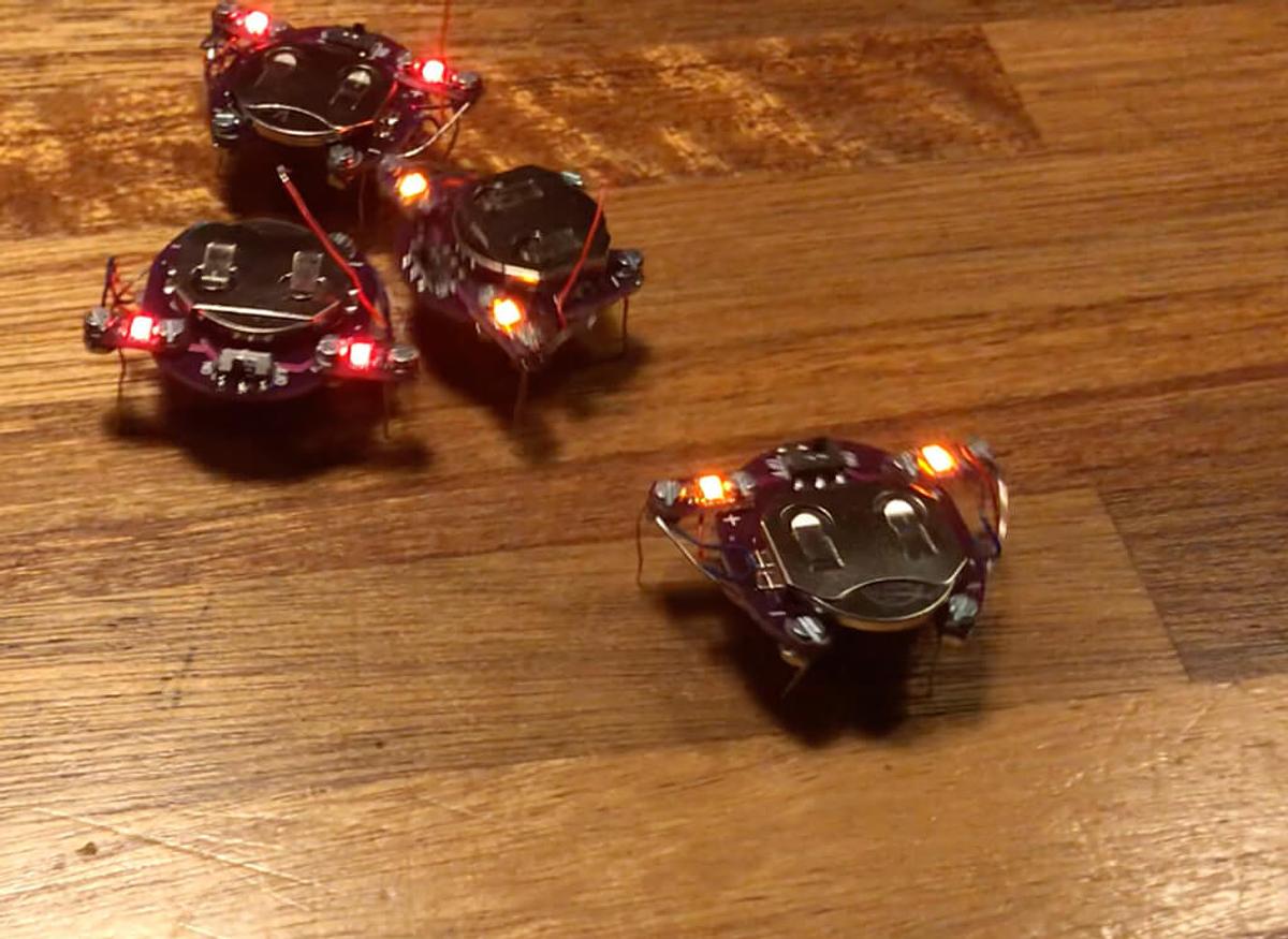 In het filmpje hieronder kun je wel al zien hoe ze bewegen (pootjes zijn nog niet geoptimaliseerd). Ze helpen elkaar zelfs als ze even 'vastzitten/stilstaan.